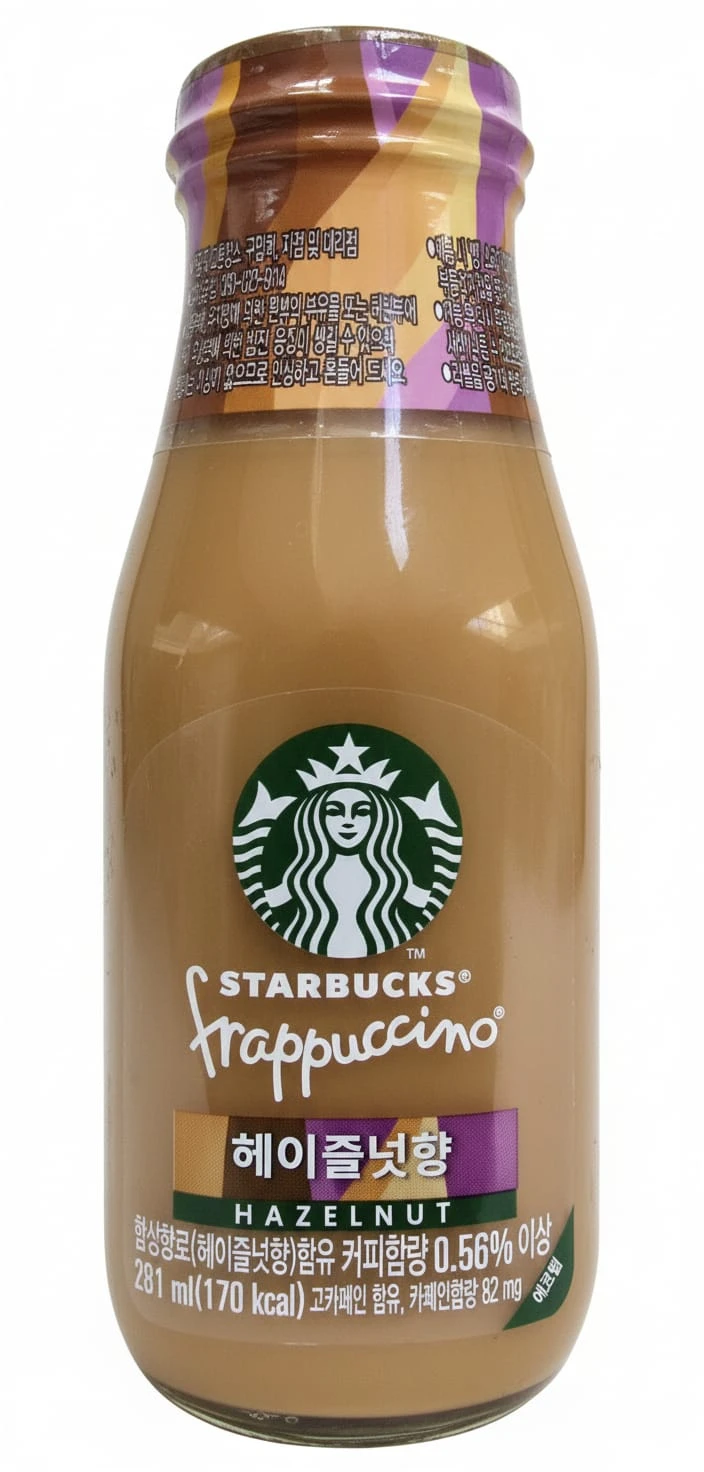 Frapuchino de Starbucks, variedad de sabores, servido en un envase de vidrio con capacidad de 281 cm3.